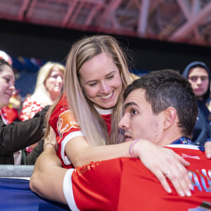 Det var rørende scener, der udspillede sig efter kampen, da Rasmus Lauge sammen med de håndboldherrerne hev EM-guldet hjem. Efter medaljeoverrækkelsen fik Rasmus Lauge selskab af sin…