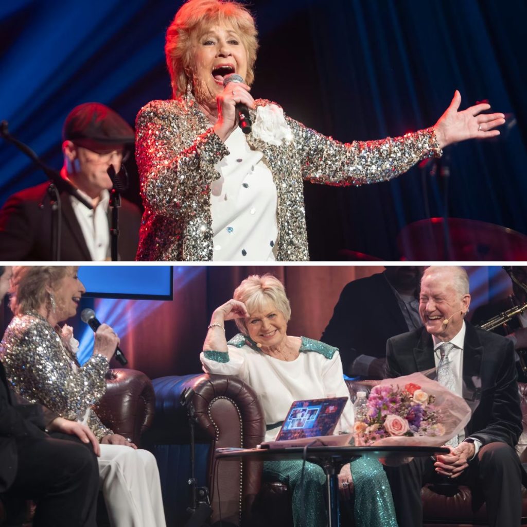 Birthe Kjær i sofaen med Keld og Hilda til afskedskoncert i Greve.