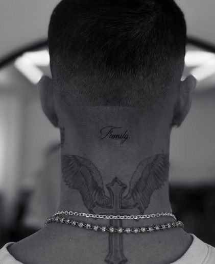 En ny tatovering viser med al tydelighed, at han er der for sin familie. “Family” er nemlig, hvad han har fået skrevet i nakken.