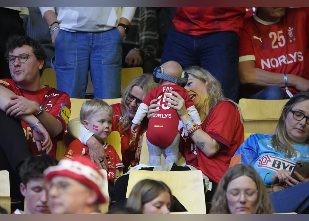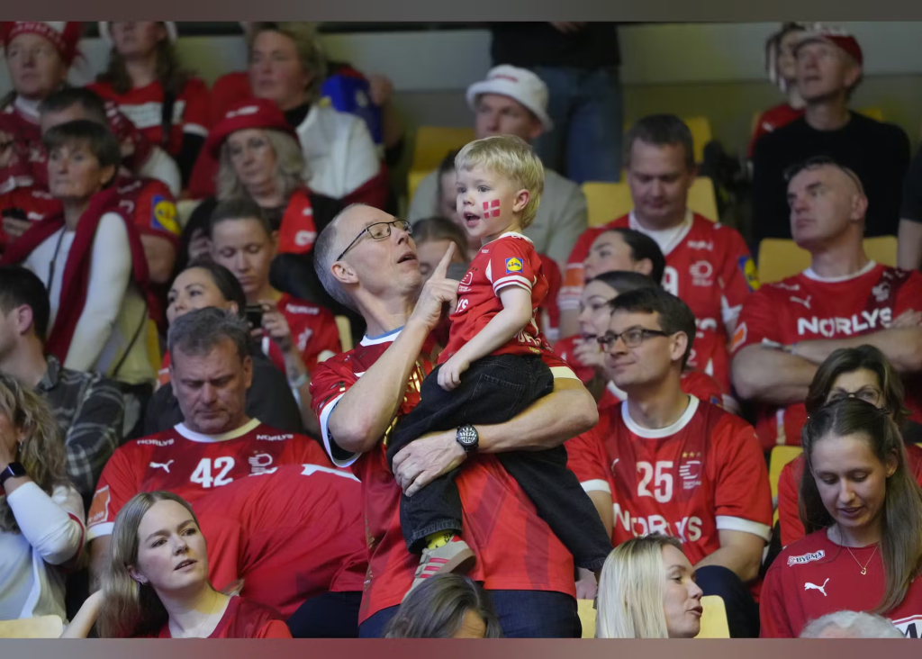 Magnus Saugstrup havde opbakning fra store og små, da håndboldherrerne fredag tørnede sammen mod Island i EM-finalen.