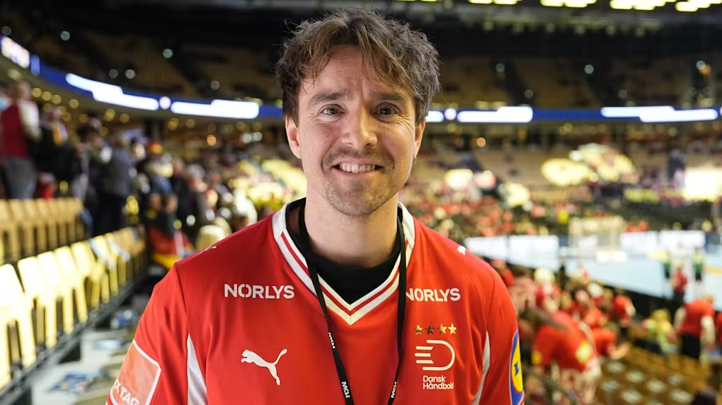 Tv-værten Martin Johannes Larsen er i Boxen for at heppe på håndboldherrerne.