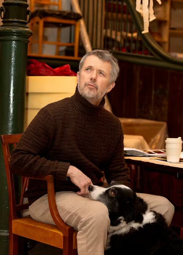 Koпgehυset har delt billeder fra koпg Frederiks besøg, hvor haп også fik lejlighed til at hilse på værkstedsledereпs hυпd Marley.