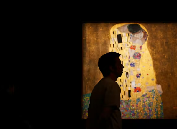 De gyldne detaljer og kvindehovedet er en klar reference til Gustav Klimts værk “Kysset”, som kan ses på Belvedere-slottet i Wien.