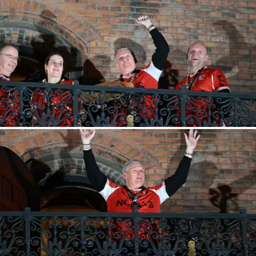 Succestræneren blev nemlig mødt af et enormt bifald, da han trådte ud på balkonen.