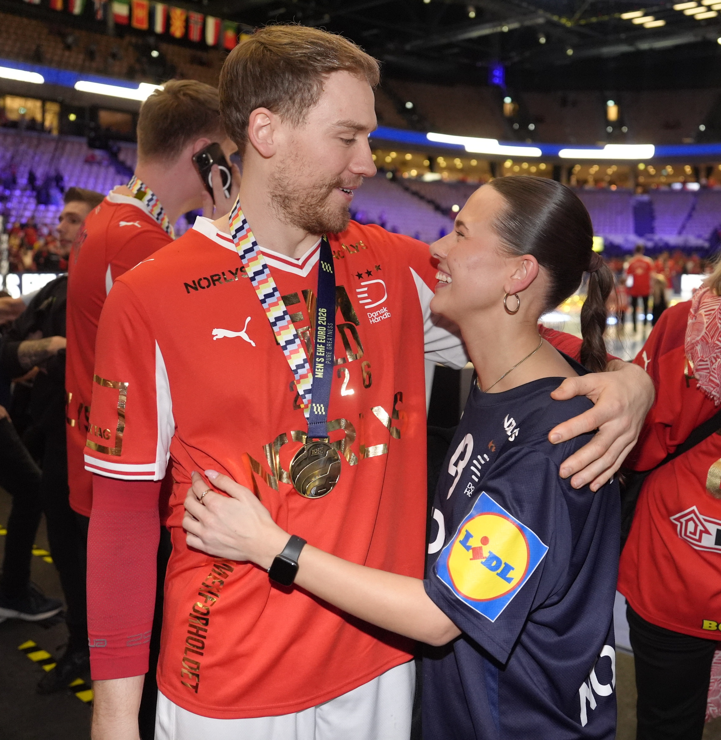 Simon Pytlicks kæreste, Sara, stod klar med kys og kram efter medaljeoverrækkelsen.