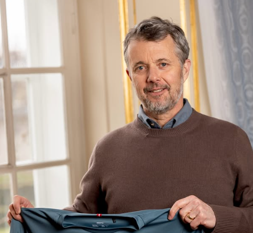 Kongehuset har således delt et opslag på Instagram, hvor Frederik står med den nye t-shirt i hånden.