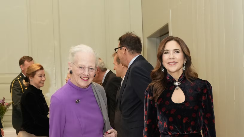 Dronning Margrethe og dronning Mary havde torsdag en festlig aften, hvor de nød hinandens selskab.